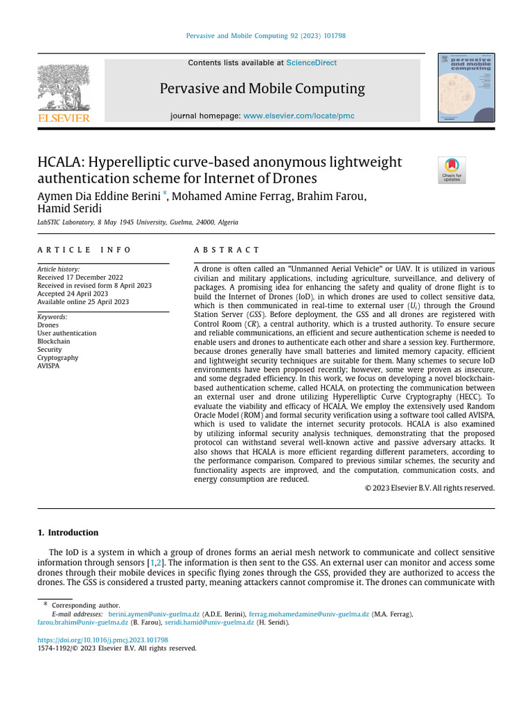 A.D.E. Berini, M.A. Ferrag, B. Farou et al. Pervasive and Mobile Computing 92 (2023) 101798
