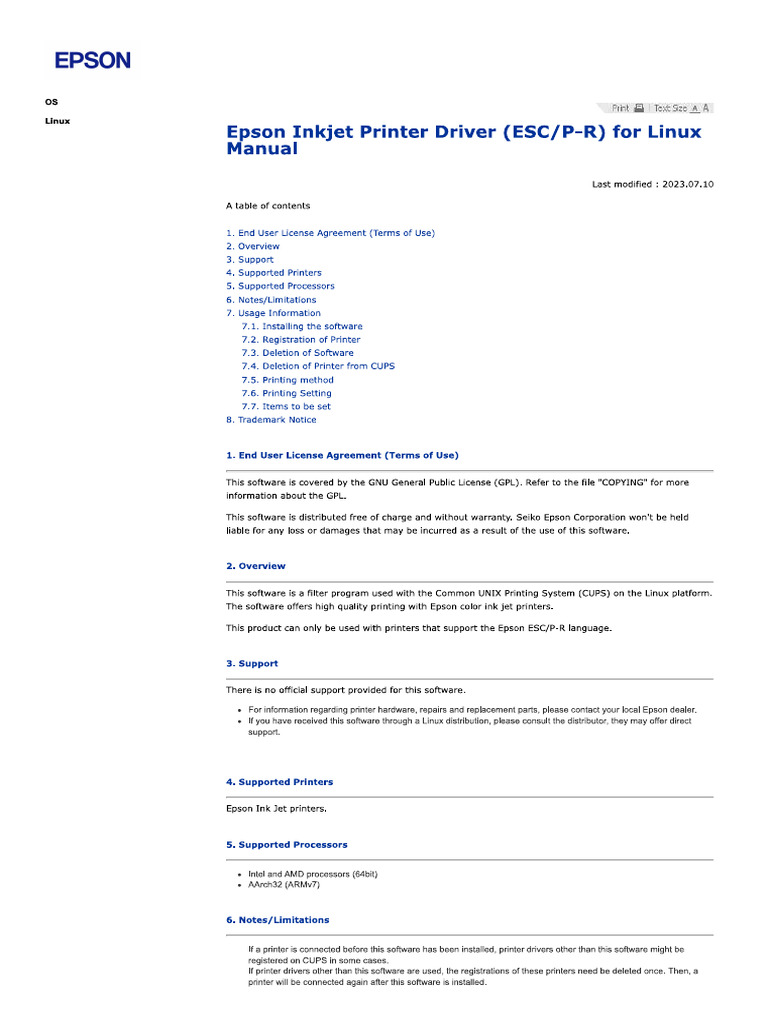 Epson Inkjet Printer Driver (ESC/P-R) for Linux