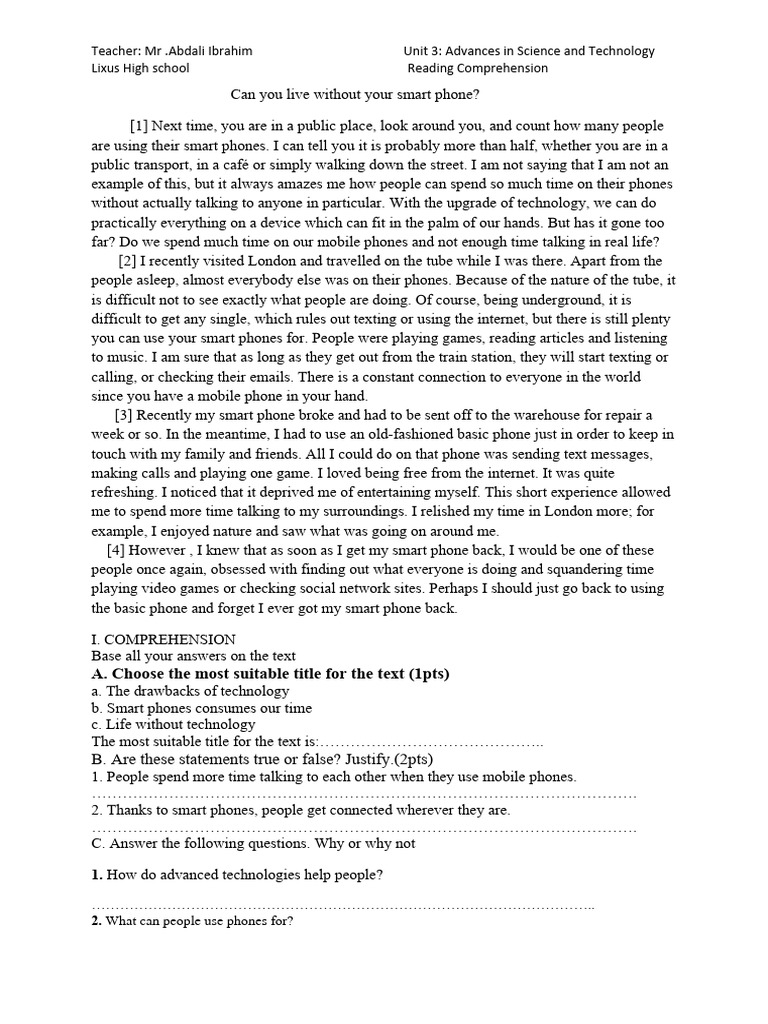 Lixus High school Reading Comprehension