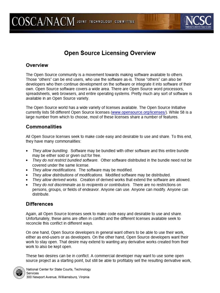 currently lists 58 different Open Source licenses (www.opensource.org/licenses/). While 58 is a