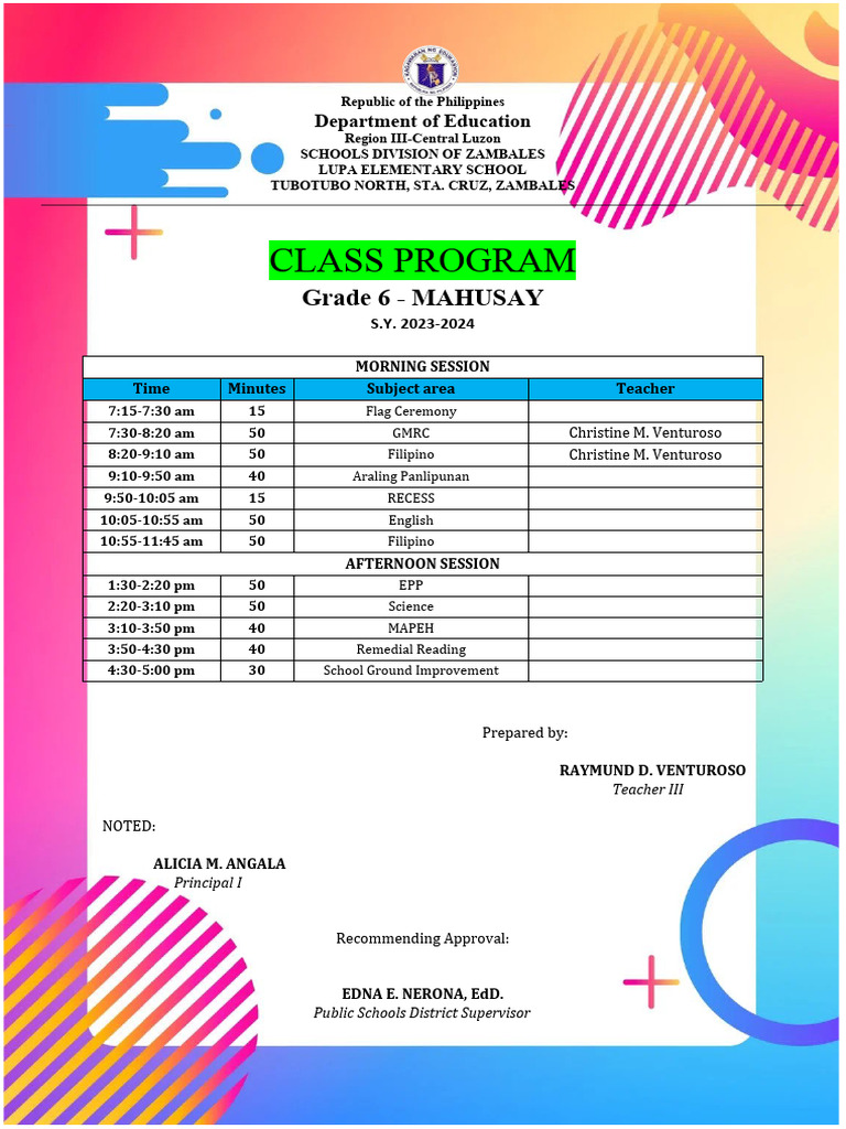 8:20-9:10 am 50 Filipino Christine M. Venturoso