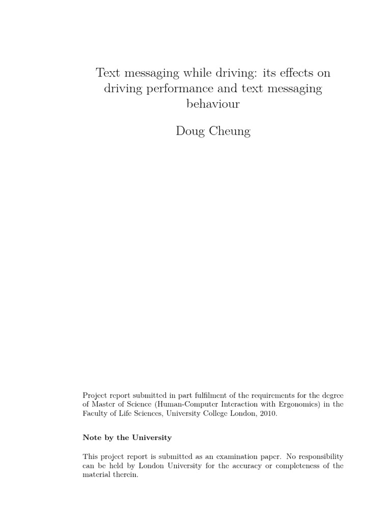 (2009). Text Messaging During Simulated Driving. Human Factors, 51(5),