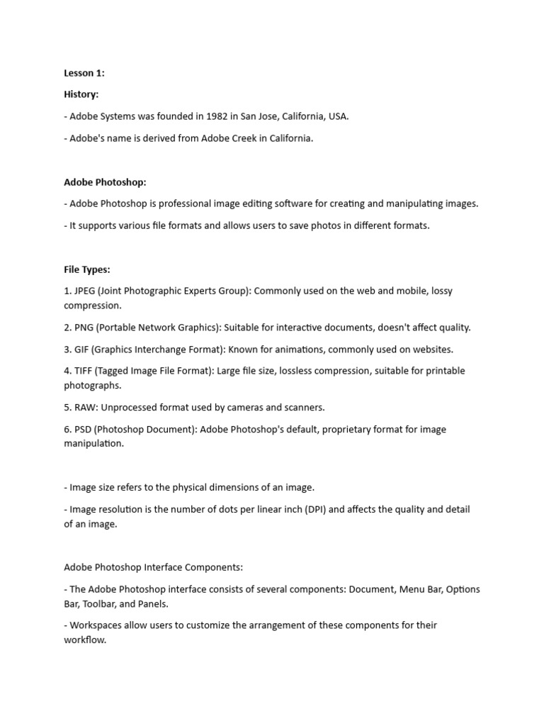 This information provides a comprehensive overview of Adobe Photoshop, its capabilities, and