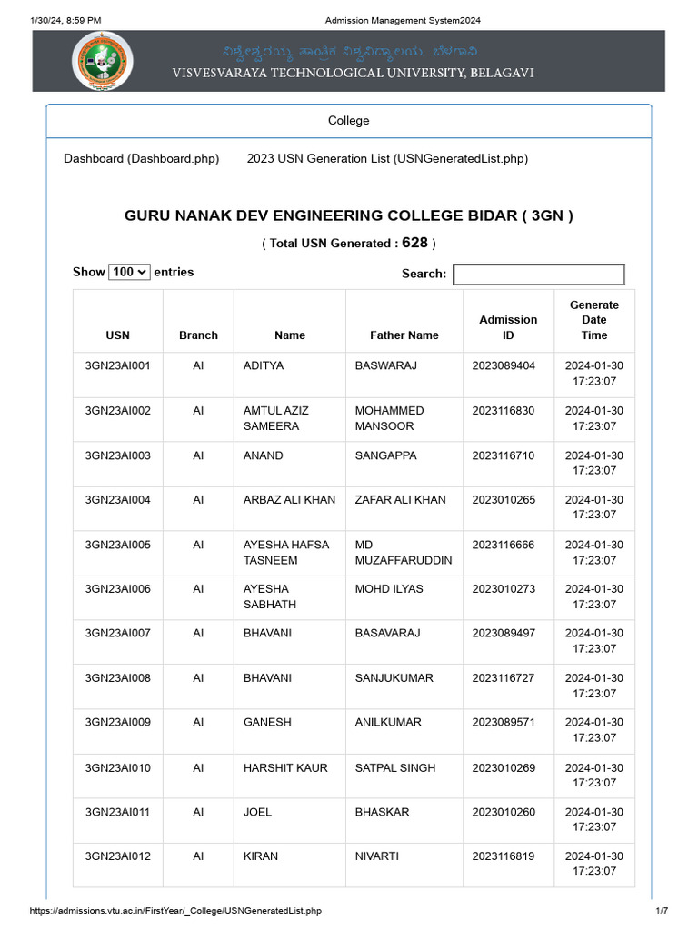 https://admissions.vtu.ac.in/FirstYear/_College/USNGeneratedList.php 4/7
