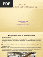 Geometrical and cutting tests are performed on machine tools in order to assess their manufacturing accuracy and process capability. For precision machining it is therefore important to measure and compensate motional deviations. These tests are carried out using measuring instruments for e.g. dial gauges, micrometers telescopes, mandrels, straight edges. These tests are designed to measure the accuracy of assembled machine tool. Tests are not carried out on individual components but they are performed on fully assembled tool. The dial gauges are more frequently used .The principle of dial indicator (dial gauge) is that the linear mechanical movement of the stylus is magnified and transferred to the rotation of pointer. The accuracy of dial indicator can be up to 0.001mm.
