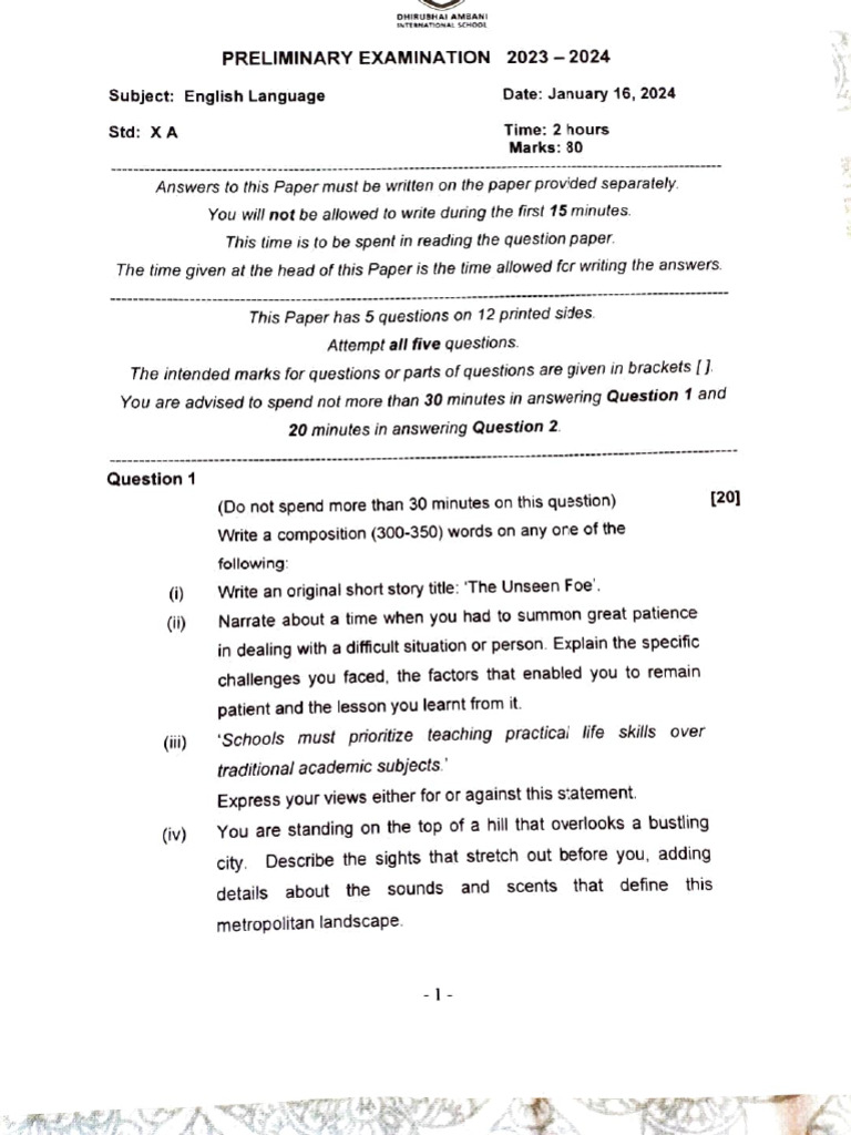 (iv) You are standing on the top of a hill that overlooks a bustling