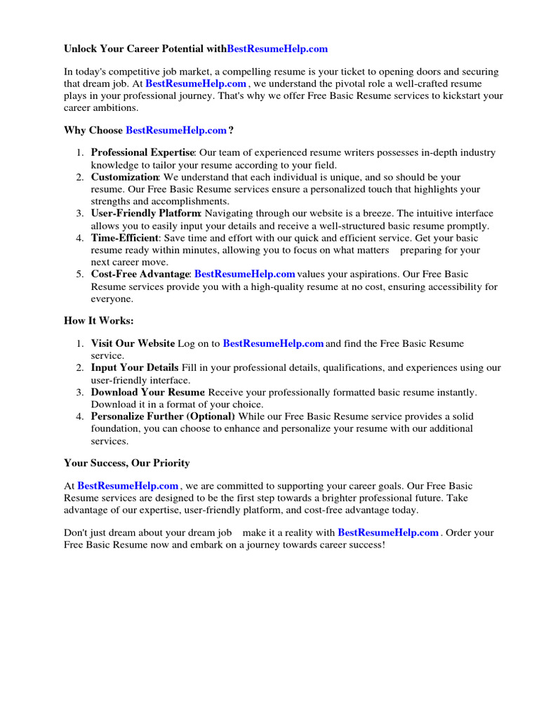resume. Our Free Basic Resume services ensure a personalized touch that highlights your
