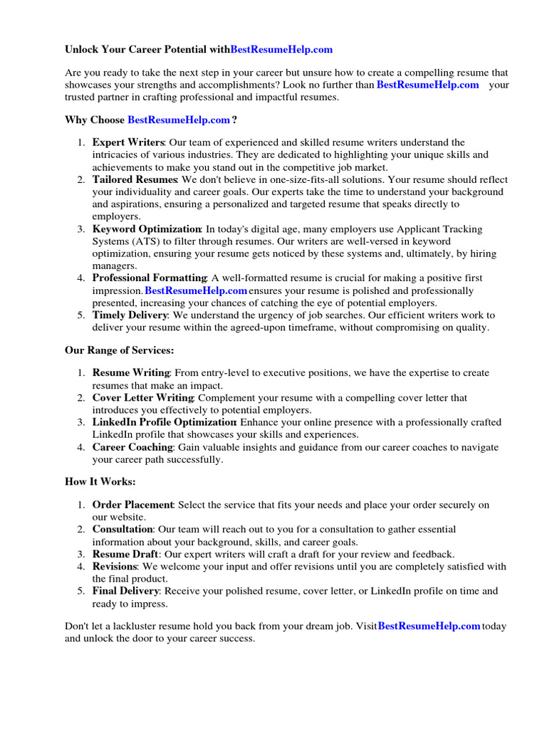impression. BestResumeHelp.com ensures your resume is polished and professionally