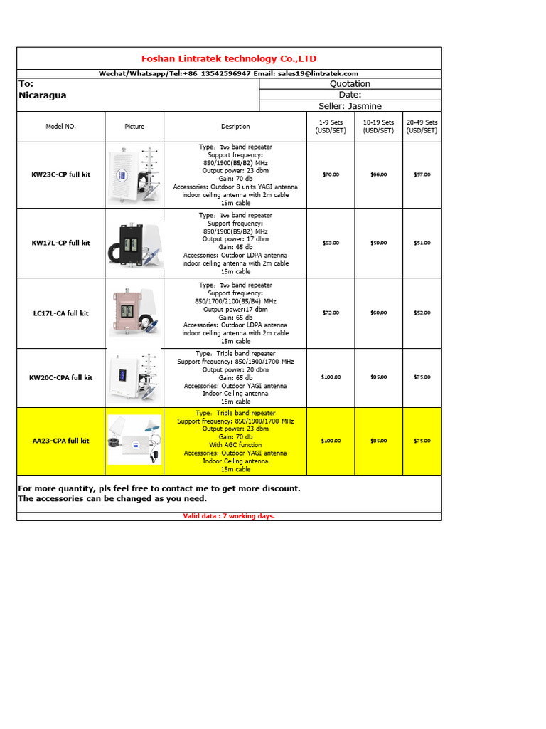 KW20C-CPA full kit Gain: 65 db $100.00 $85.00 $75.00