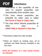 Inheritance is the capability of getting the properties and characteristics of one class to other