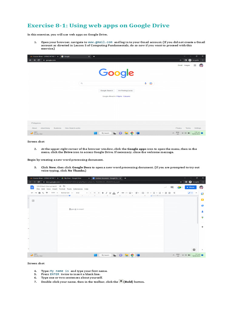 20. Close the Drive tab, sign out of Gmail, then close your browser.