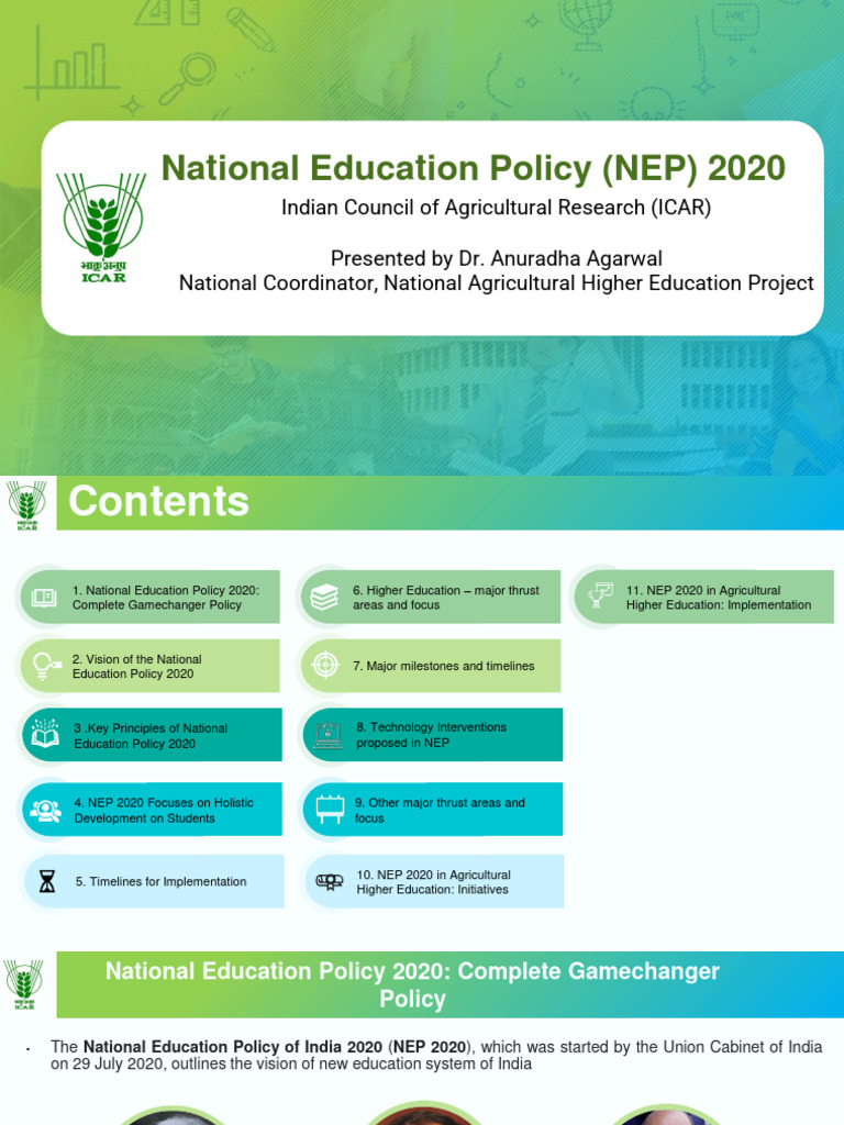 1. National Education Policy 2020: 6. Higher Education – major thrust 11. NEP 2020 in Agricultural