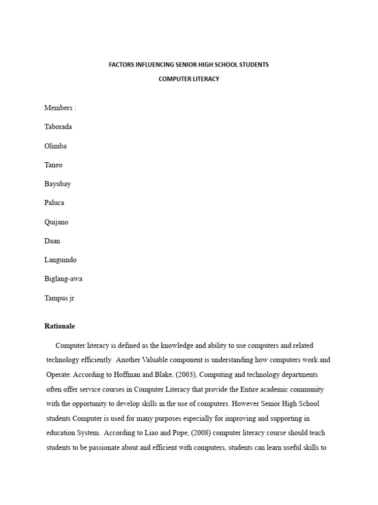This study aims to investigate the factors that affect Senior high School Students Computer