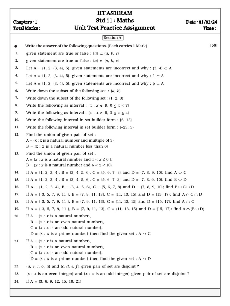 Chapters : 1 Std 11 : Maths Date : 01/02/24