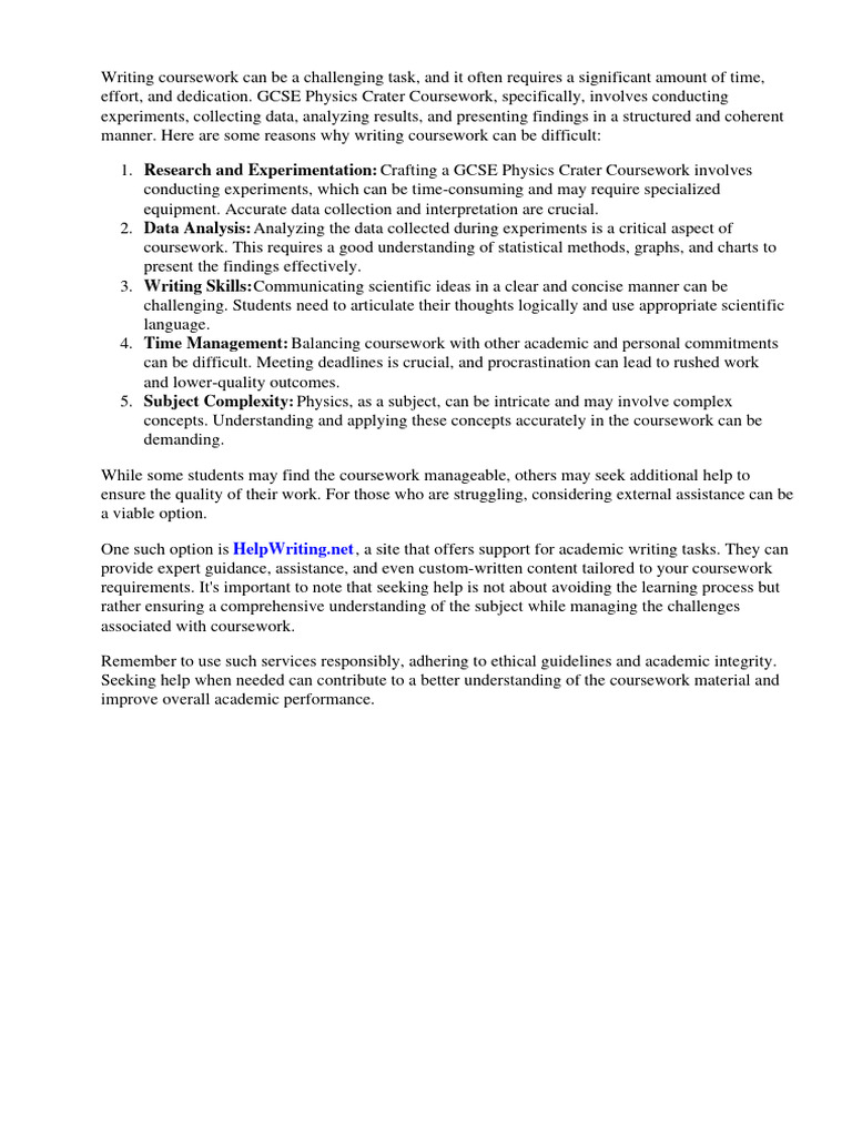 effort, and dedication. GCSE Physics Crater Coursework, specifically, involves conducting