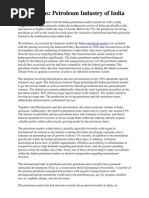 The Indian petroleum industry is mainly divided into upstream and downstream companies. While the up-stream segment includes exploration of oil and gas, downstream companies are involved in refining and marketing of the products. Currently, state-owned Oil and Natural Gas Corporation Ltd is the biggest producer of oil (largely from the Mumbai High offshore fields) with a share of around 75 per cent in India's total crude production. The major units pertaining to the oil sector in India are Indian Oil Corporation (Public sector) Oil and Natural Gas Corporation (Public sector) Reliance India Ltd (Private sector) Essar Oil Refinery (Private sector) Bharat Petroleum Corporation Ltd (Public sector) Hindustan Petroleum Corporation Ltd (Public sector) Mangalore Refineries and Petrochemicals Ltd (Public sector) ONGC is the major player in the Indian energy & petroleum sector