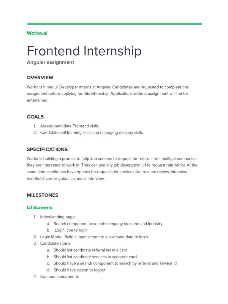 Worko is hiring UI Developer interns in Angular. Candidates are requested to complete this
