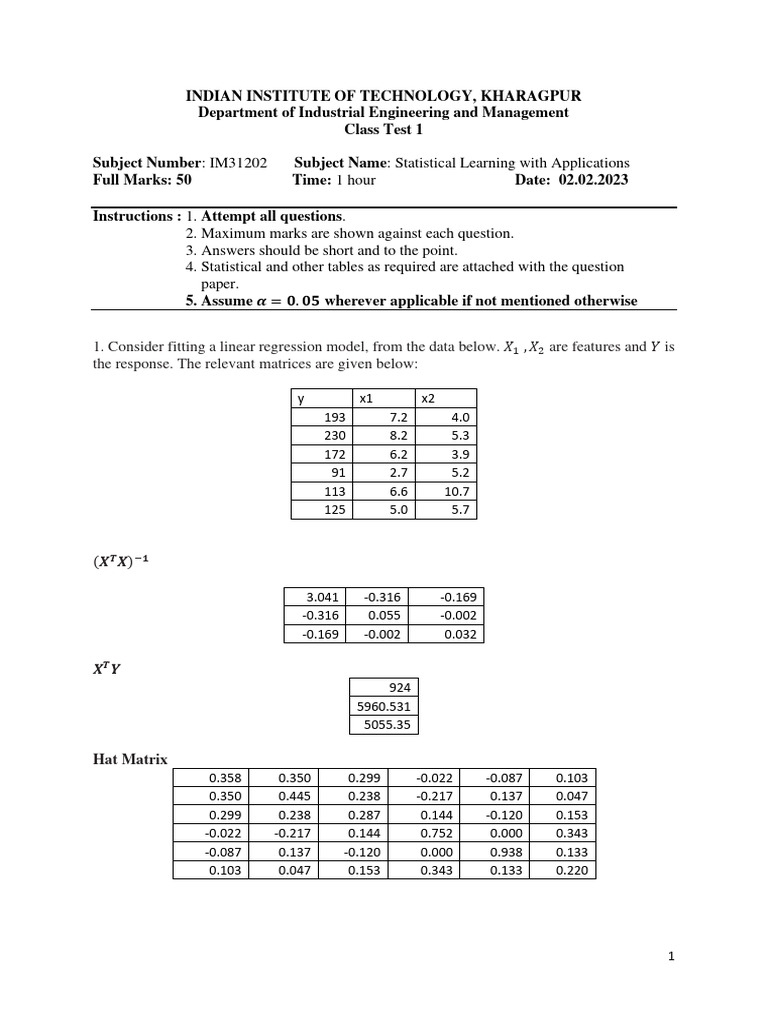 Subject Number: IM31202 Subject Name: Statistical Learning with Applications