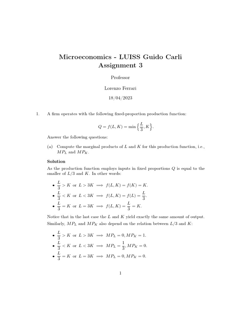 • = K or L = 3K =⇒ f (L, K) = = K.