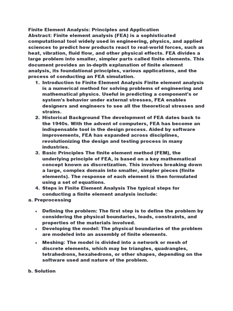 document provides an in-depth explanation of finite element