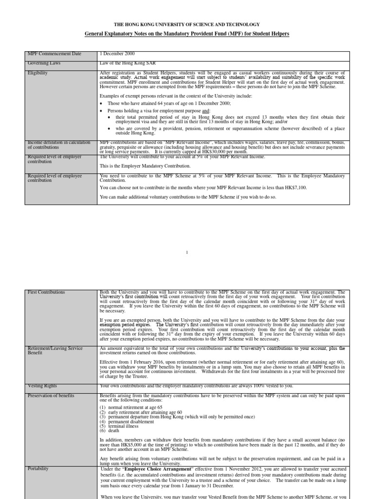 General Explanatory Notes on the Mandatory Provident Fund (MPF) for Student Helpers