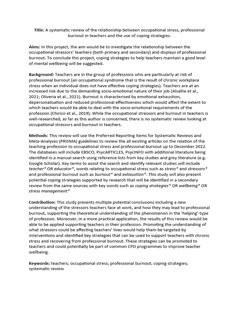 teaching profession to occupational stress and professional burnout up to December 2022.