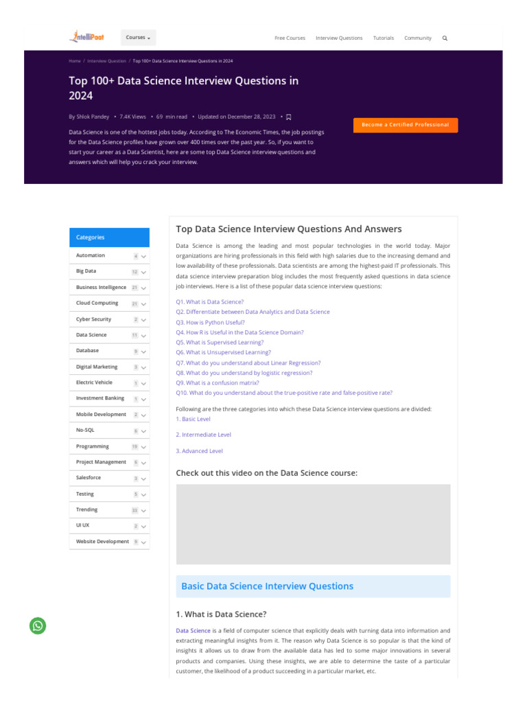Home / Interview Question / Top 100+ Data Science Interview Questions in 2024