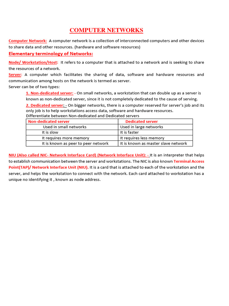 1. Non-dedicated server: - On small networks, a workstation that can double up as a server is