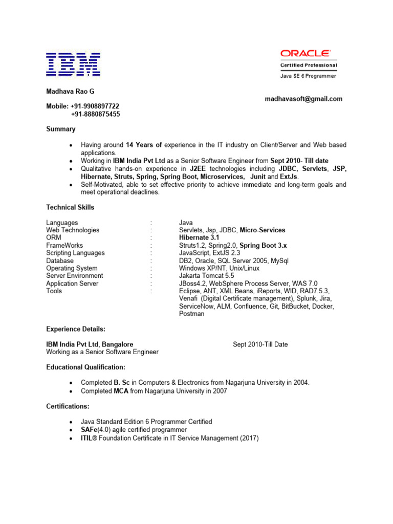 Working in IBM India Pvt Ltd as a Senior Software Engineer from Sept 2010- Till date