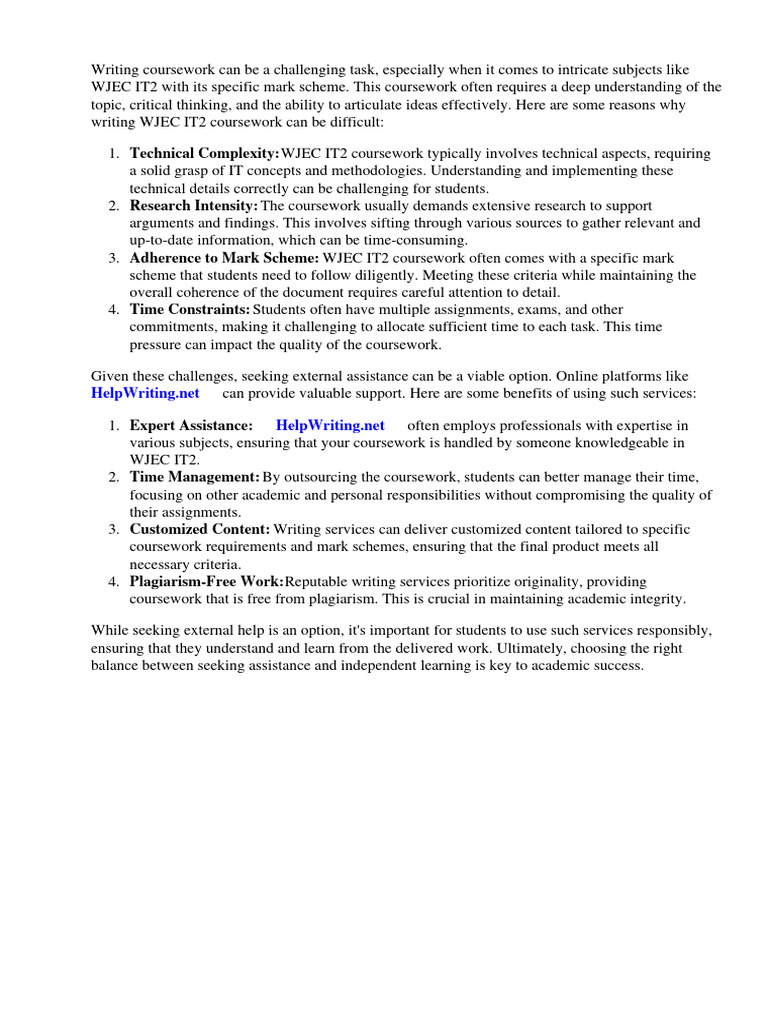 3. Adherence to Mark Scheme: WJEC IT2 coursework often comes with a specific mark