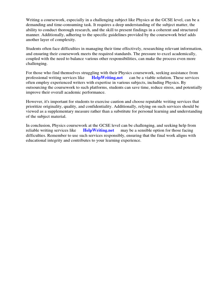In conclusion, Physics coursework at the GCSE level can be challenging, and seeking help from