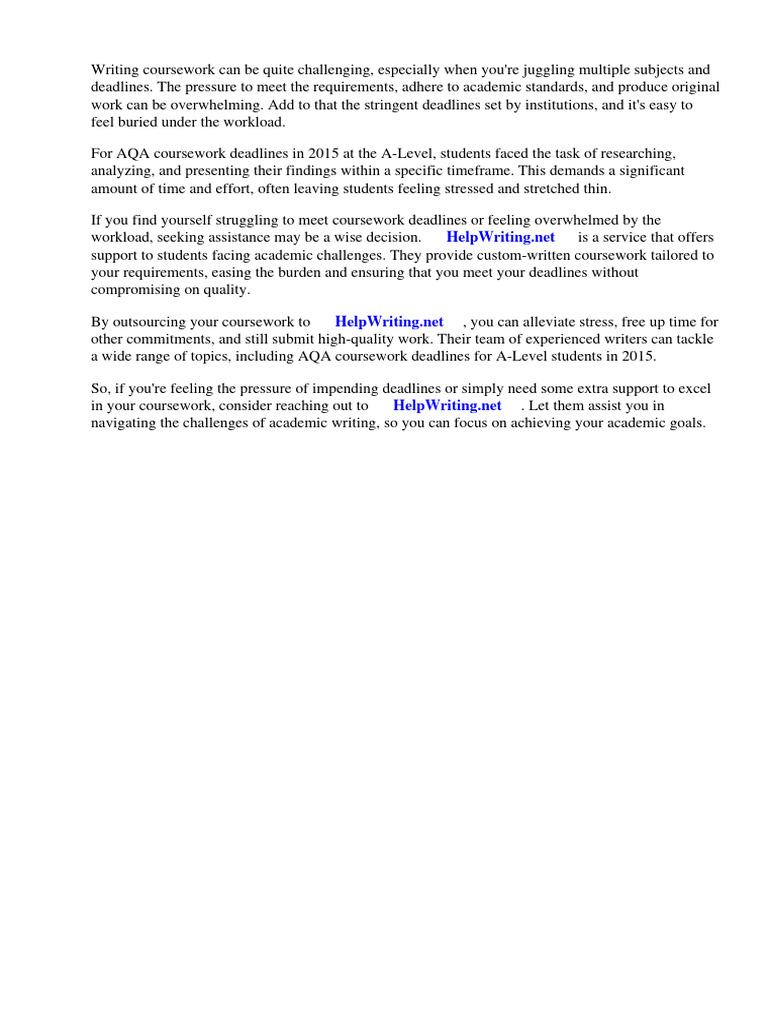 a wide range of topics, including AQA coursework deadlines for A-Level students in 2015.