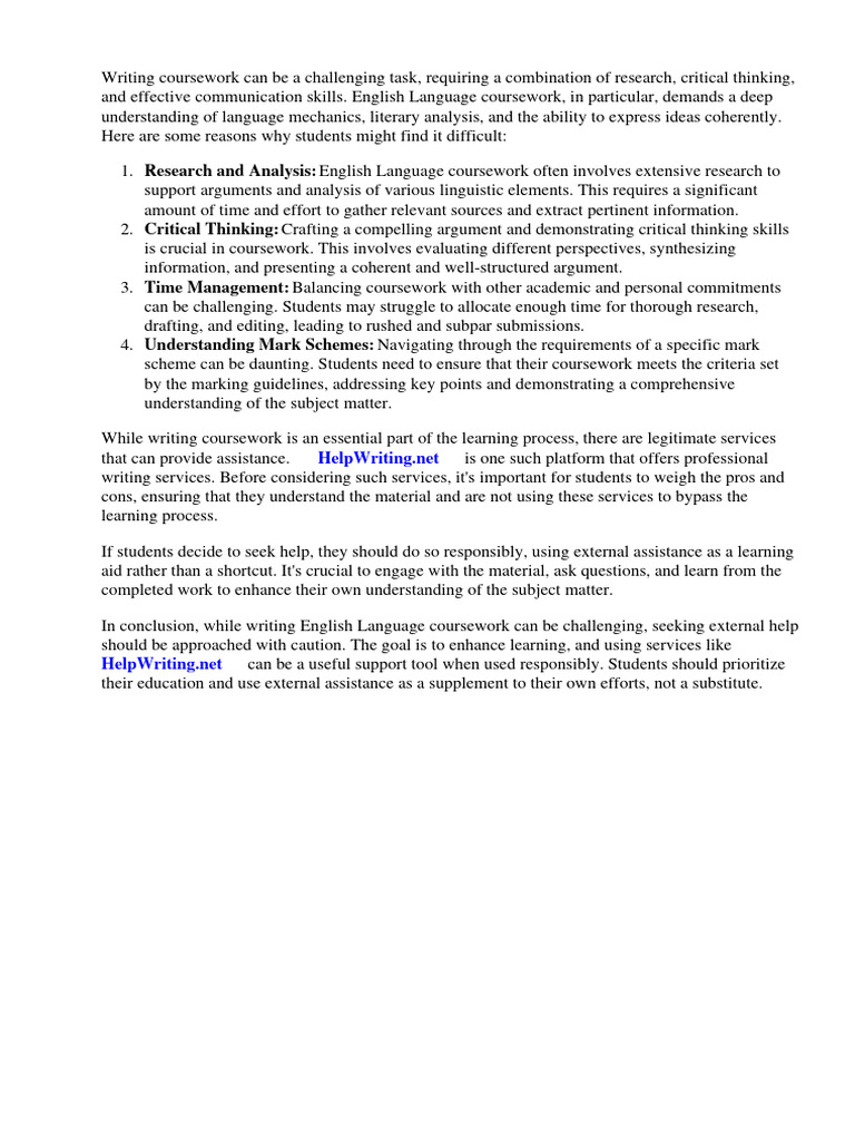 In conclusion, while writing English Language coursework can be challenging, seeking external help