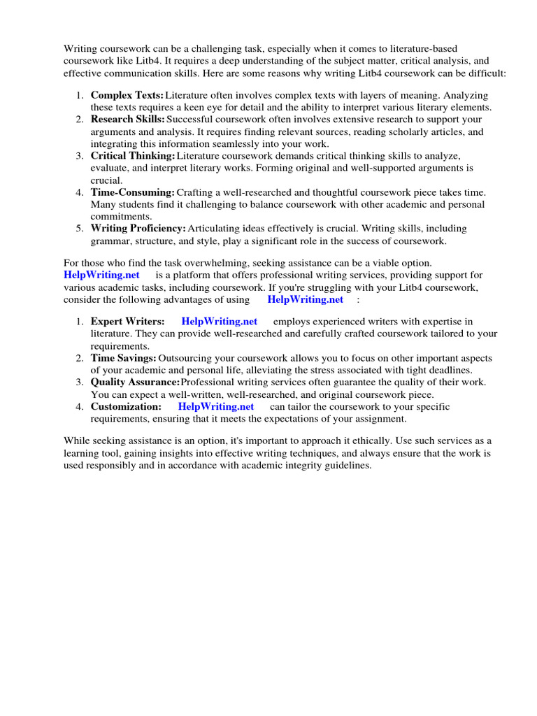 effective communication skills. Here are some reasons why writing Litb4 coursework can be difficult: