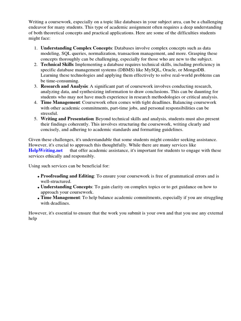 Writing a coursework, especially on a topic like databases in your subject area, can be a challenging