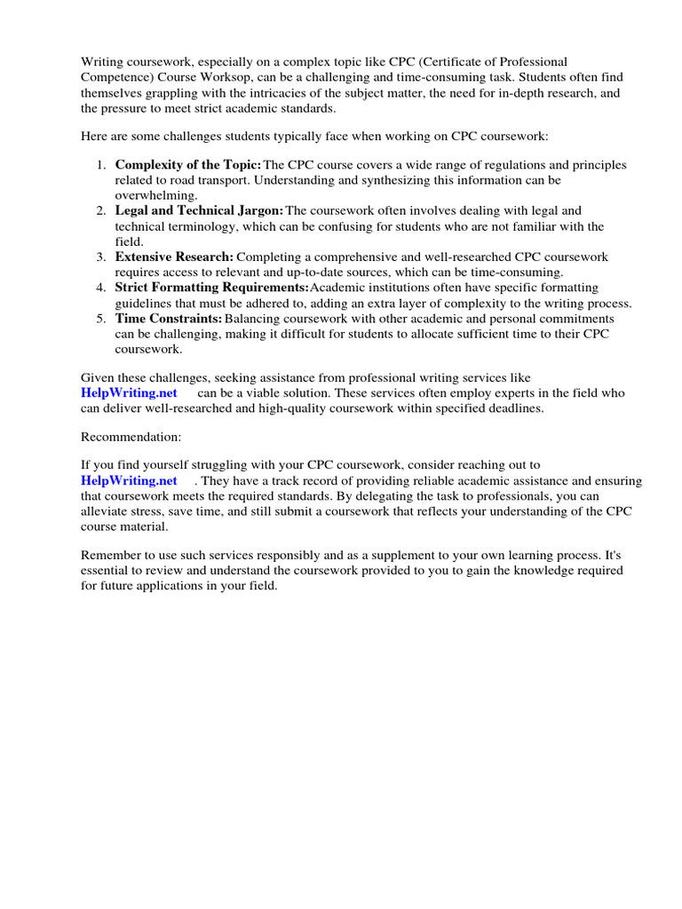 Writing coursework, especially on a complex topic like CPC (Certificate of Professional