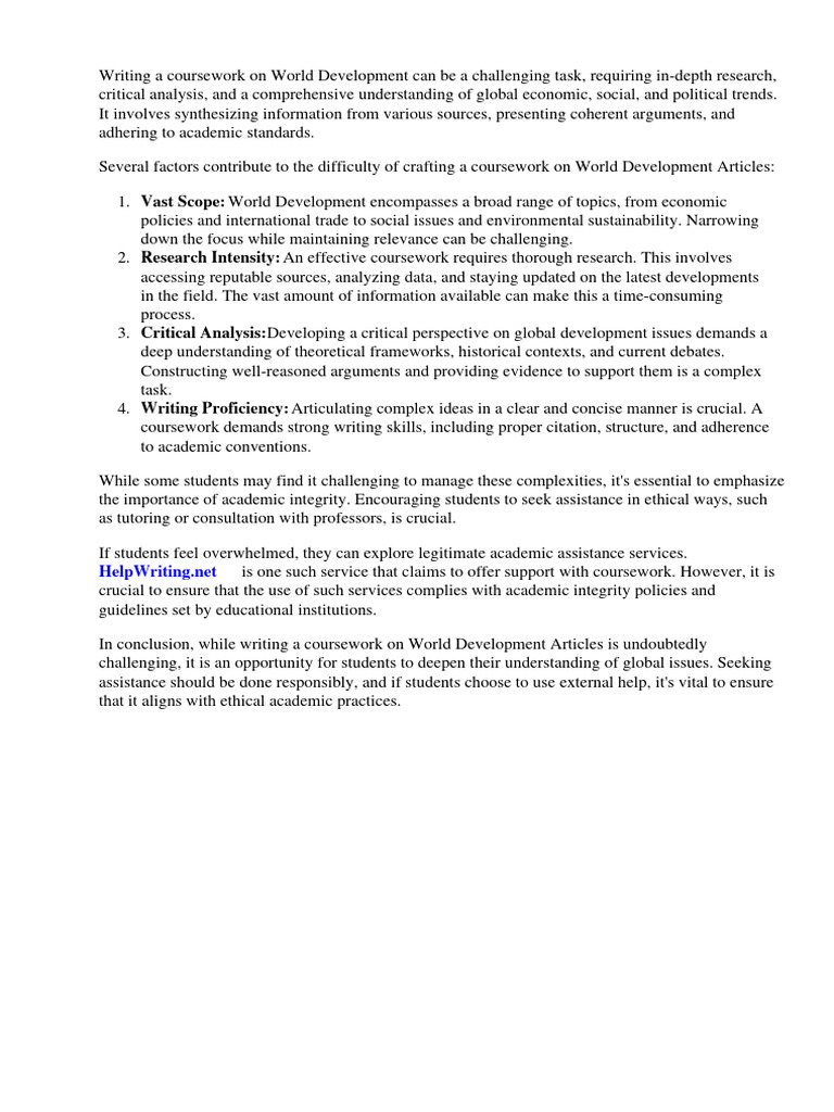 Several factors contribute to the difficulty of crafting a coursework on World Development Articles: