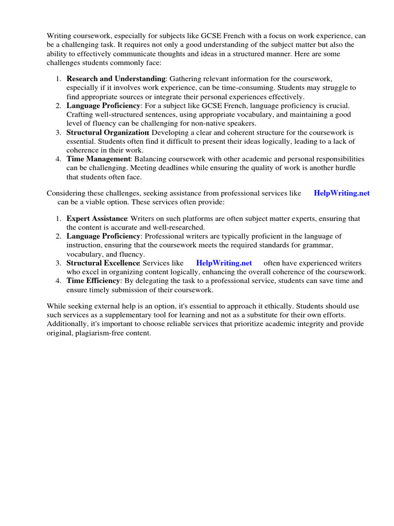 Writing coursework, especially for subjects like GCSE French with a focus on work experience, can