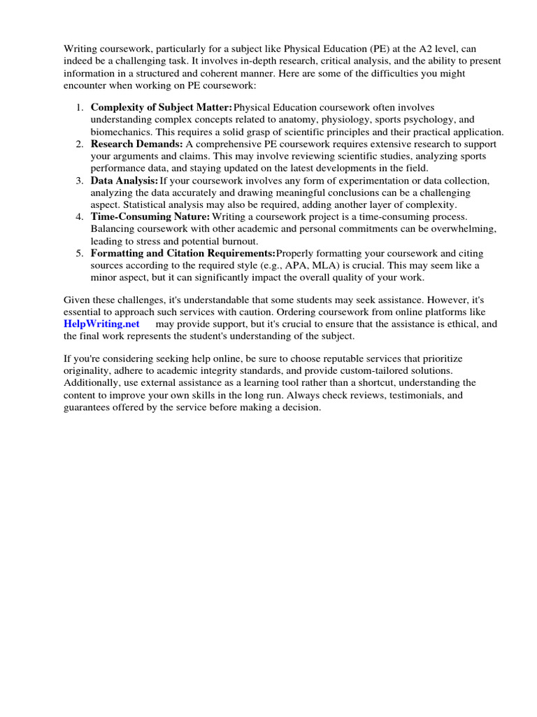 Writing coursework, particularly for a subject like Physical Education (PE) at the A2 level, can