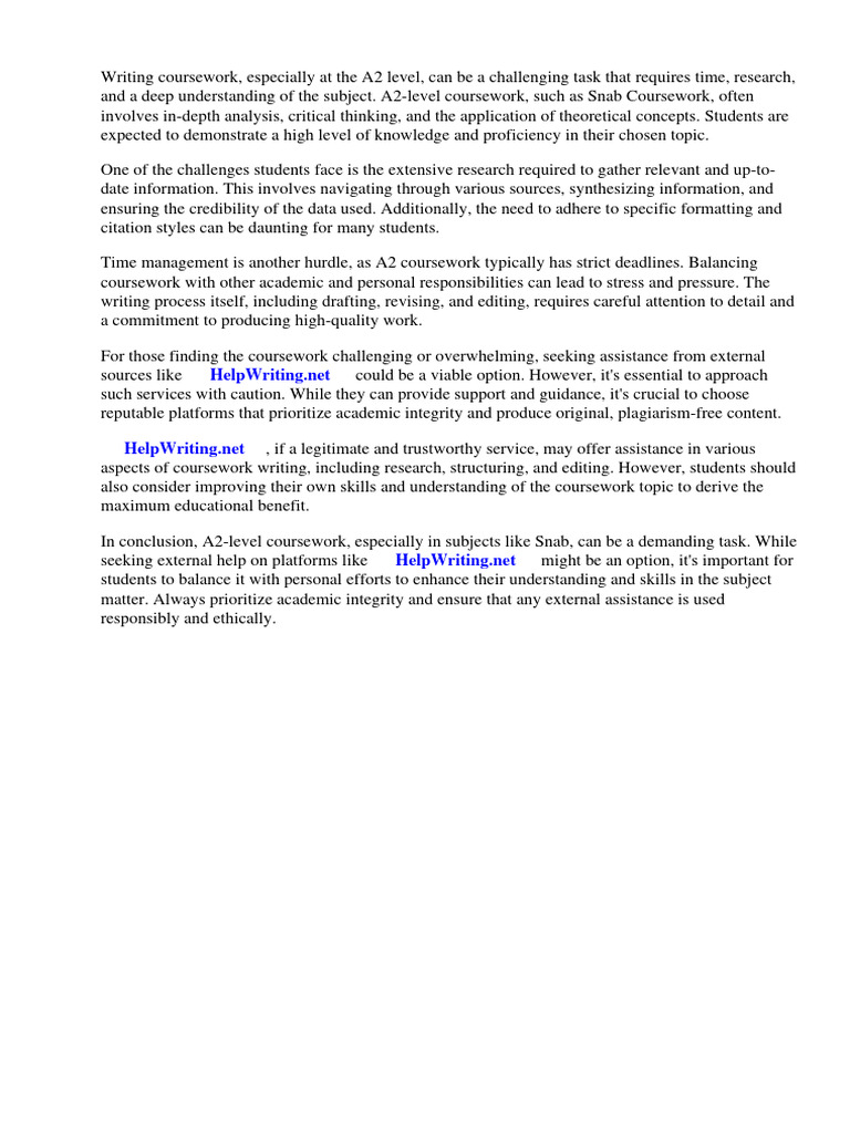 In conclusion, A2-level coursework, especially in subjects like Snab, can be a demanding task. While