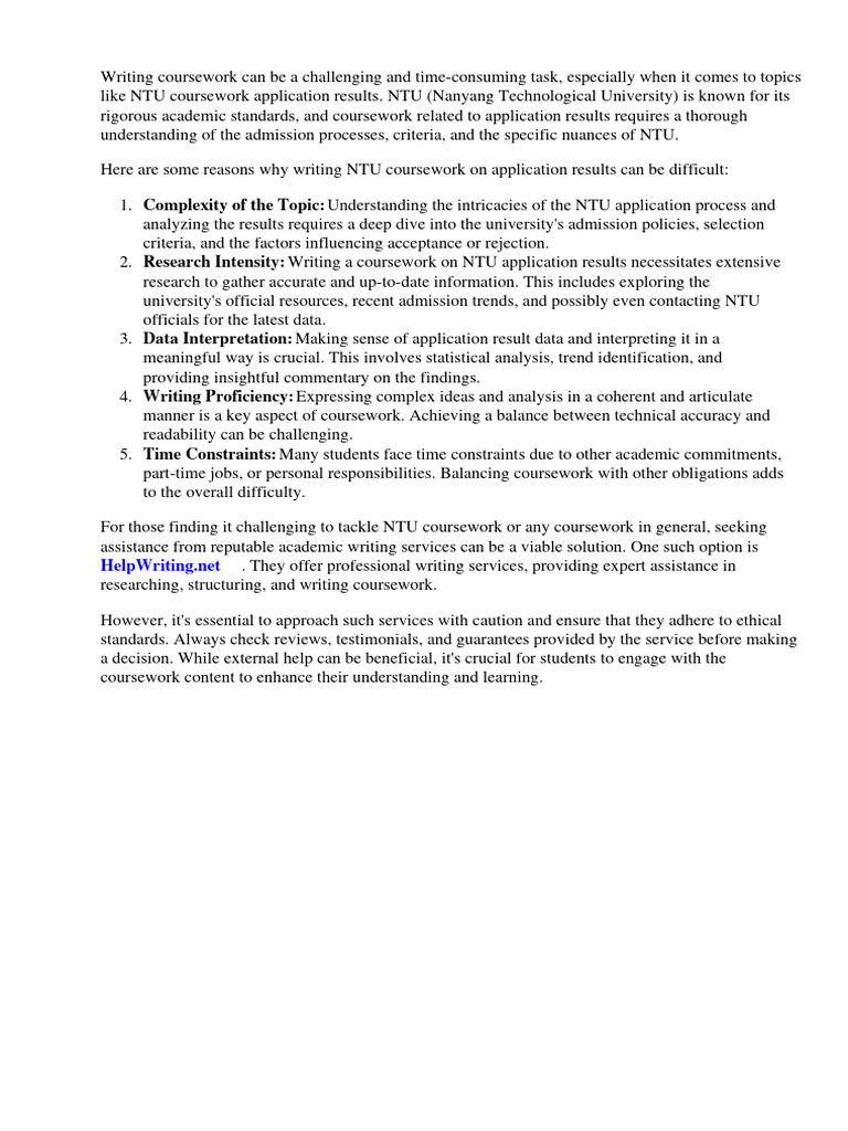 Here are some reasons why writing NTU coursework on application results can be difficult: