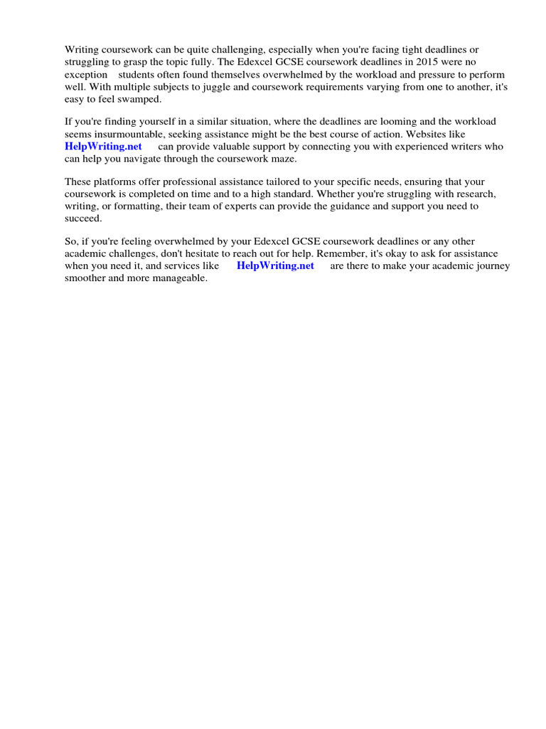 struggling to grasp the topic fully. The Edexcel GCSE coursework deadlines in 2015 were no