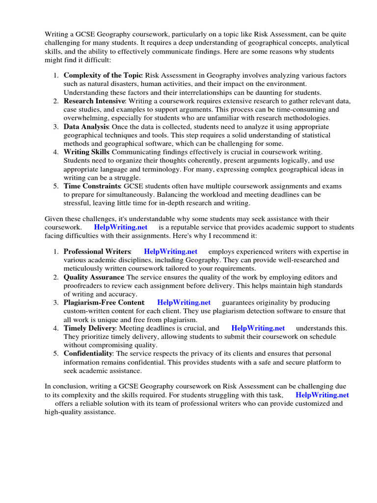 Writing a GCSE Geography coursework, particularly on a topic like Risk Assessment, can be quite