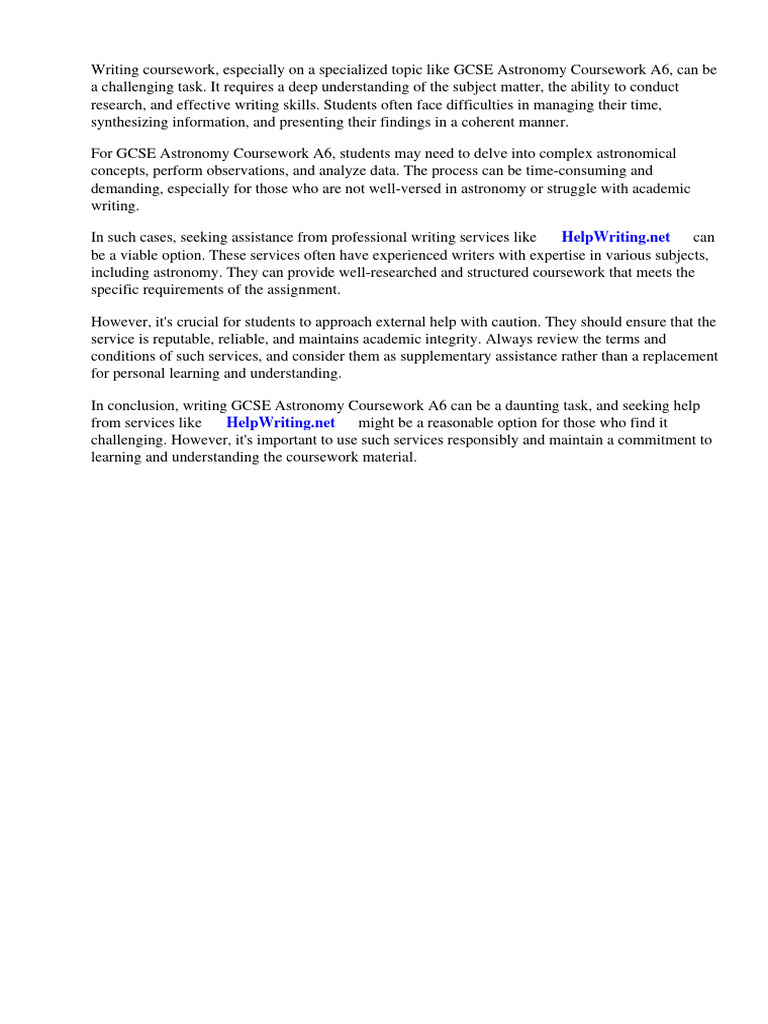 In conclusion, writing GCSE Astronomy Coursework A6 can be a daunting task, and seeking help
