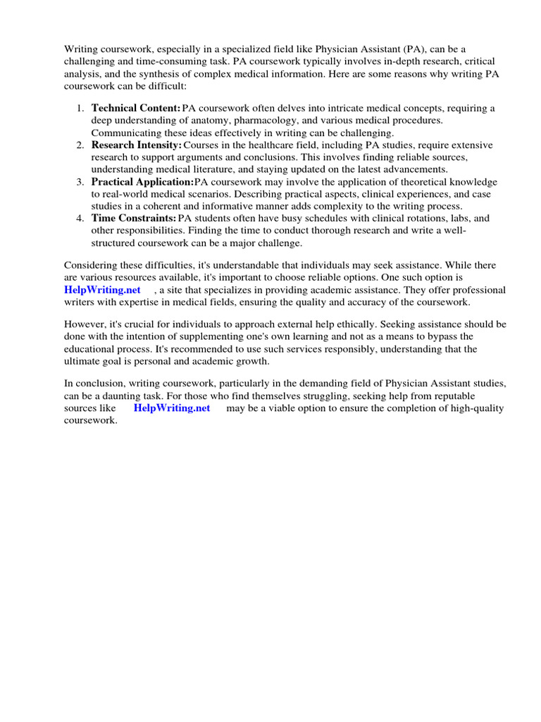 Writing coursework, especially in a specialized field like Physician Assistant (PA), can be a