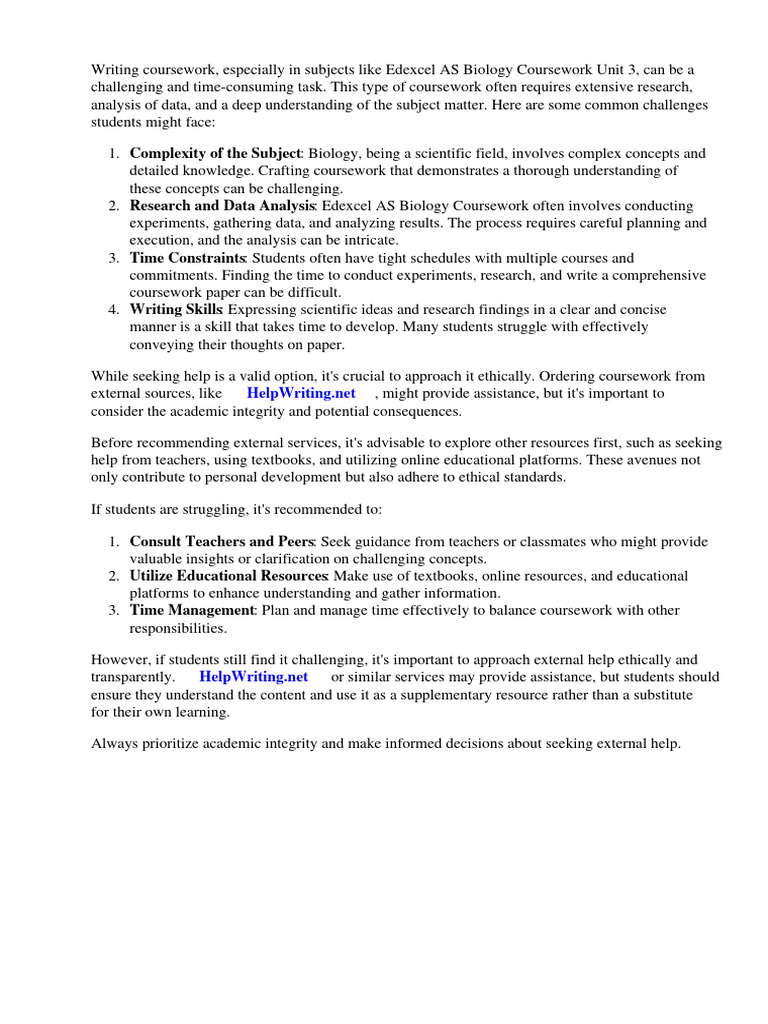 Writing coursework, especially in subjects like Edexcel AS Biology Coursework Unit 3, can be a