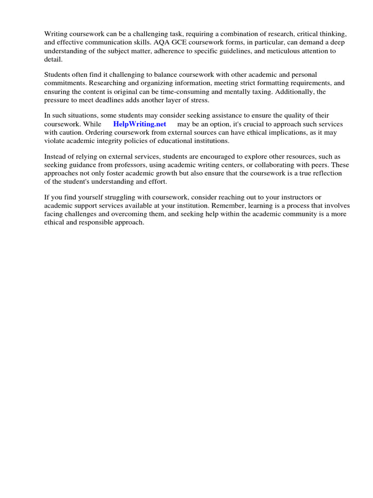 and effective communication skills. AQA GCE coursework forms, in particular, can demand a deep