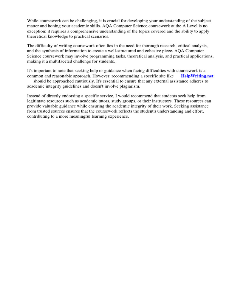 matter and honing your academic skills. AQA Computer Science coursework at the A Level is no