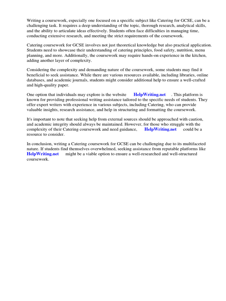 Writing a coursework, especially one focused on a specific subject like Catering for GCSE, can be a