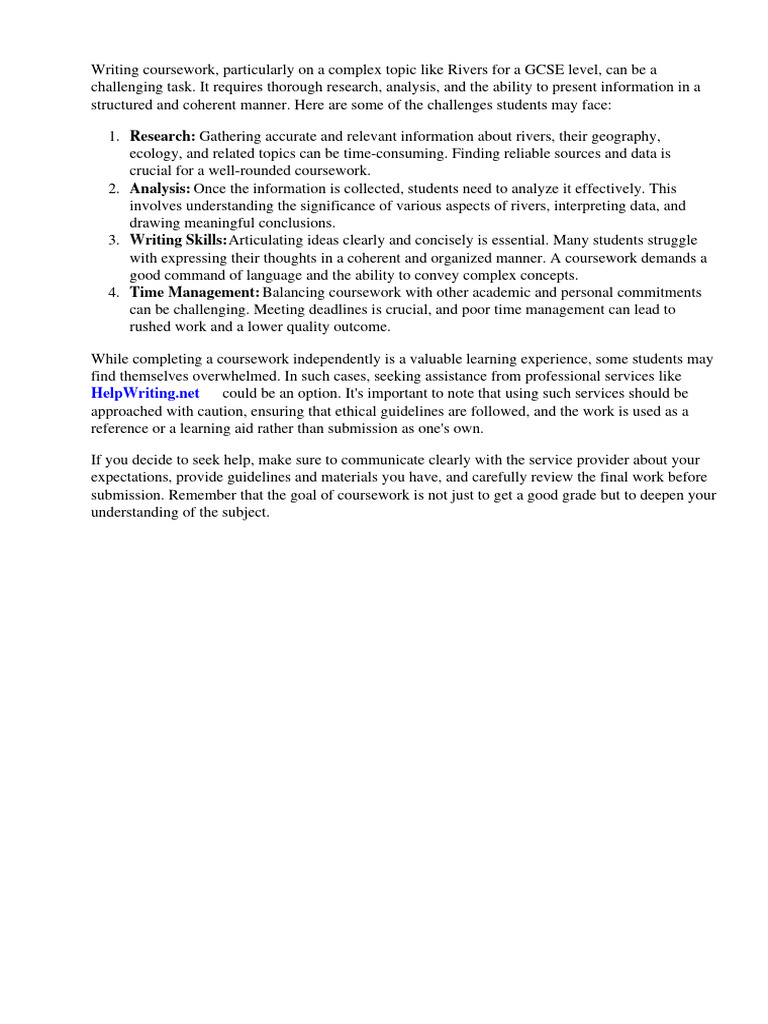 Writing coursework, particularly on a complex topic like Rivers for a GCSE level, can be a